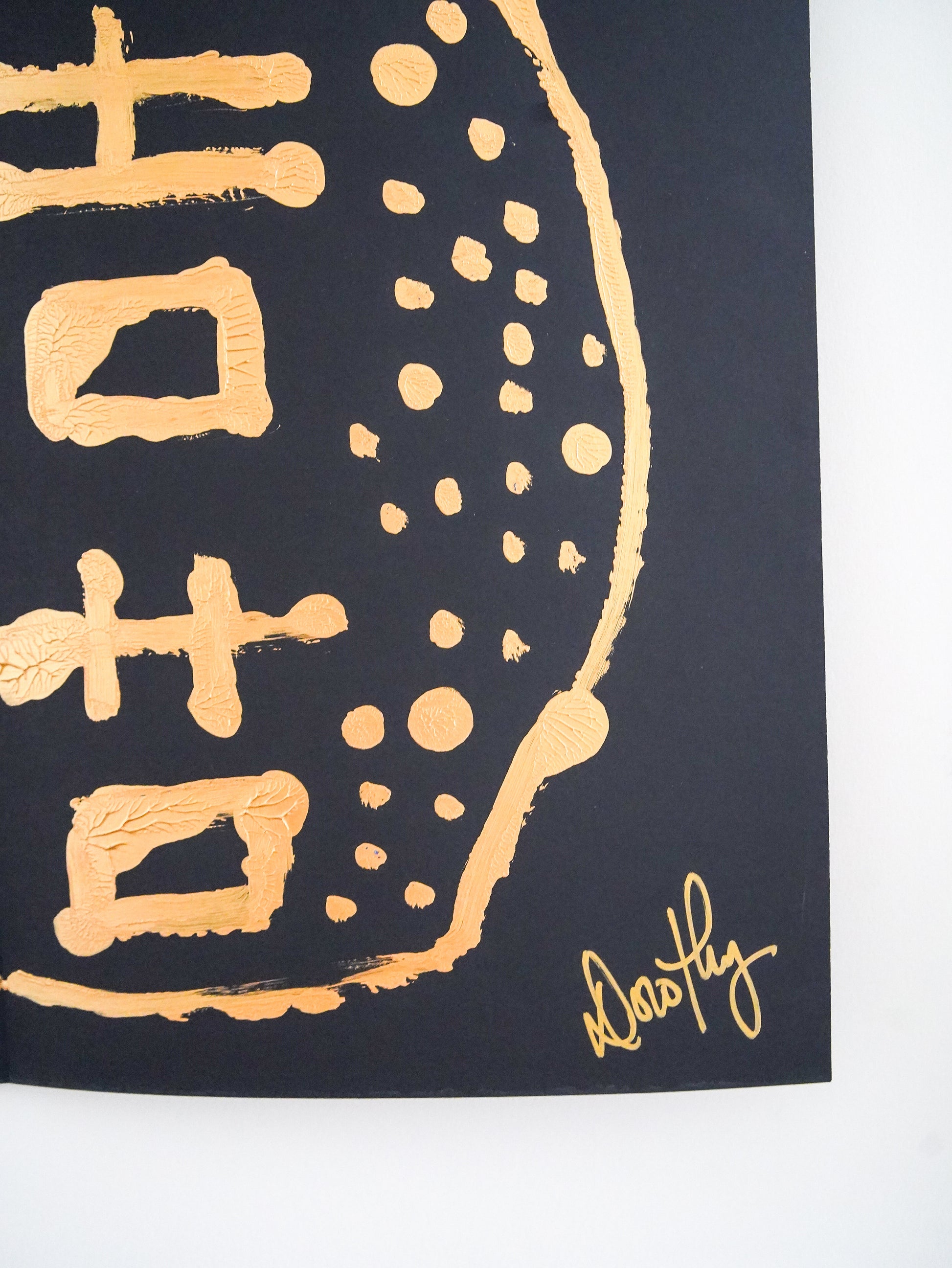 A striking piece of wall art featuring a bold gold floral design on a black background. This artwork offers a modern aesthetic, blending simplicity with a touch of luxury. Its metallic accents catch the light beautifully, making it a focal point in any room. Perfect for adding elegance and personality to contemporary living spaces.